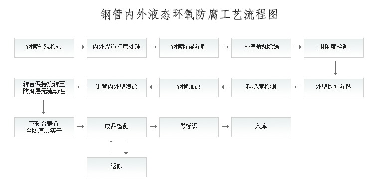 公司現(xiàn)有鋼管內(nèi)外液態(tài)環(huán)氧防腐生產(chǎn)線一條,產(chǎn)品規(guī)格為φ508mm~φ3620mm,執(zhí)行SY/T0457-2000、SY/T0447-96、AWWA C210-07等標準。涂敷采用無氣噴涂或離心葉輪式涂敷機,生產(chǎn)線核心設(shè)備為:鋼管內(nèi)、外壁拋丸清理機,加熱爐,自動涂敷車,烘干保溫室等。生產(chǎn)設(shè)備自動化程度高,運行穩(wěn)定,涂敷質(zhì)量可靠。設(shè)備加工能力強、范圍大,防腐產(chǎn)品主要用于輸送石油、天然氣、水、煤漿等介質(zhì)。